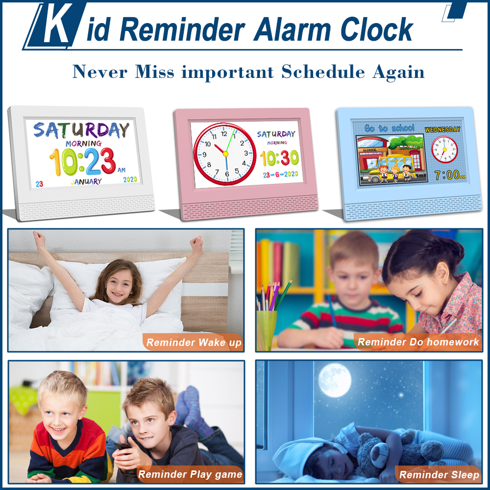✨【Interesting Digital Alarm Clock】-- The schedule clock will help you and your children set 5 daily alarm clocks and 12 specific scene alarm clocks. When the alarm clock rings, the clock will display cartoon scene images and specific voice broadcasts, letting children know what to do at the moment What, form a good habit.